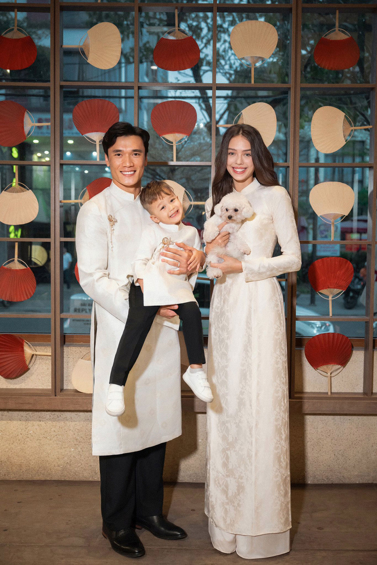 Thủ thành Bùi Tiến Dũng cùng vợ mẫu Tây và con trai tung bộ ảnh cực đẹp đón Tết Bính Ngọ 2026.